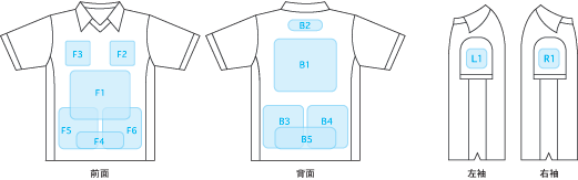 「B1の襟から○cm 下」のように具体的にご指示頂ければよりイメージに近いプリントが可能です。